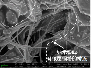 图1片状银覆铜粉/AgNW双组分导电胶的微观形貌