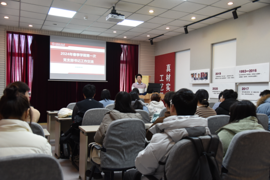 会上,宋欣益围绕2024年全国两会讲授了微党课,她结合科技、教育、人才等领域,带领大家认真学习了两会精神。随后,慕岩传达了全校师生党员基本培训第一课的通知要求,强调要提高思想认识、强化组织动员、严肃参训纪律。最后,姚喆峰安排了本年度学生党建工作重点内容。