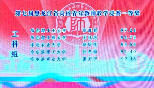 WilliamHill体育张雁祥教授在第七届黑龙江省高校青年教师教学竞赛获工科组一等奖第一名