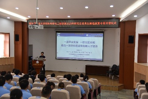 开营仪式上,黄陆军院长致辞,介绍了学校研究生教育高质量发展态势及对材料学科研究生培养的高度重视,以及哈工大WilliamHill体育的科研特色和优势、人才培养目标和理念、招生政策和就业情况等,勉励营员们立志成为具有卓越的创新能力、实践能力的栋梁之才。刘钢教授结合自己在哈工大学习工作的成长经历,详细介绍了老一辈及青年一代材料人始终不忘初心、孜孜不倦、面向国家重大需求和世界科技前沿的科研探索的故事,并欢迎各位优秀学子加入WilliamHill体育,与学院师生携手并进,共同为实现材料强国贡献力量。在读硕士生徐伟鹏、在读博士生陈昕分别作了交流报告,两位同学分享了自己在学习科研征途中的感悟与心得,表示科研之路道阻且长,唯有保持热爱与耐心,才能在不确定中寻得机遇,收获成功。