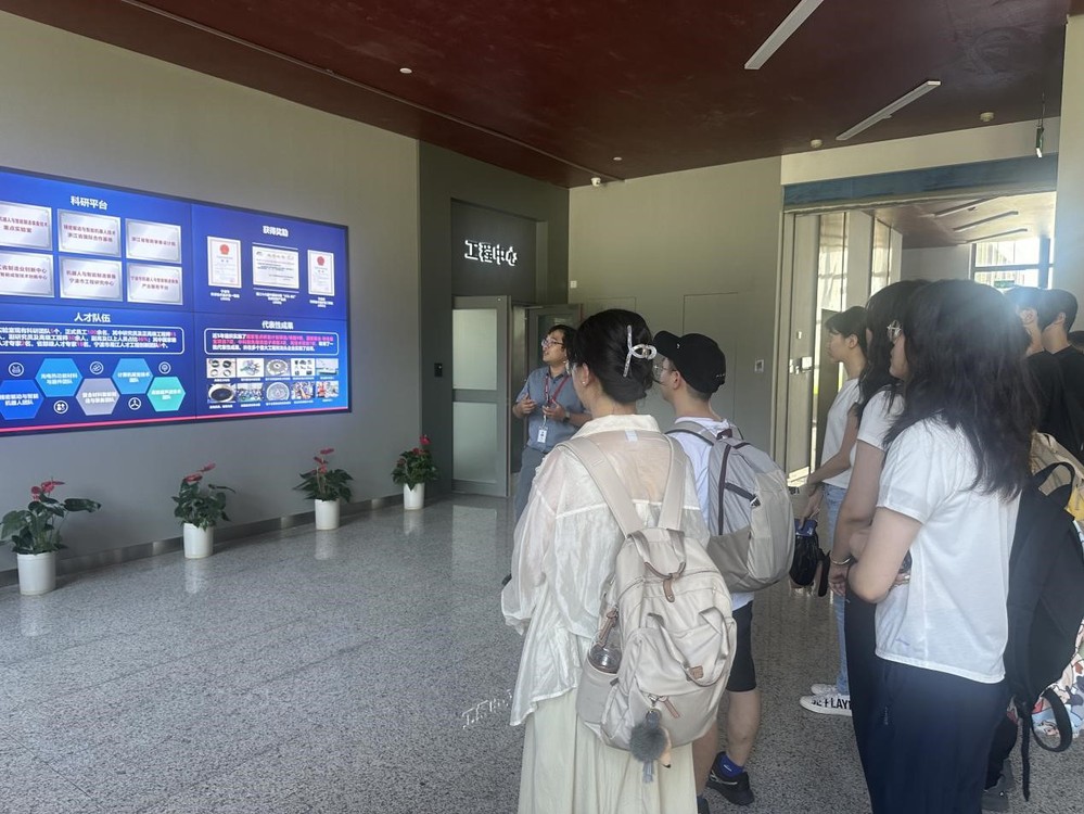 7月23日上午,实践团一行来到中国科学院宁波材料技术与工程研究所进行参观交流。首先,宁波材料所党委委员、人力资源处处长孙清华为同学们介绍了研究所的整体情况,包括研究所的科研方向、人才培养模式、近年来取得的重大科研成果以及在所工作的哈工大优秀校友发展情况,使实践团成员们有了更加全面的了解。接下来,实践团分别参观了海洋关键材料重点实验室、原子尺度与微纳制造实验室、机器人与智能制造装备技术实验室,分别了解了实验室在海洋材料方面、微纳制造技术方面、智能机器人方面的创新研究进展、广泛应用以及未来发展方向,让同学们对于科技成果转化有了更加直观的认识。