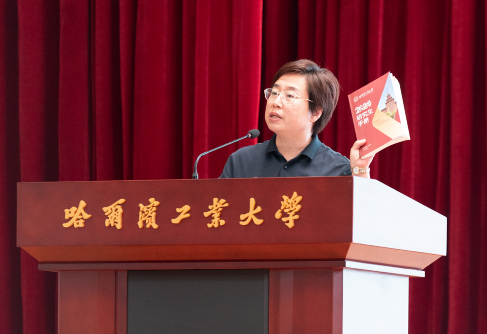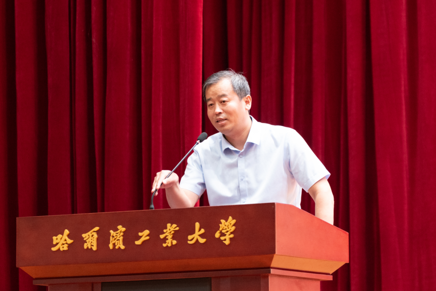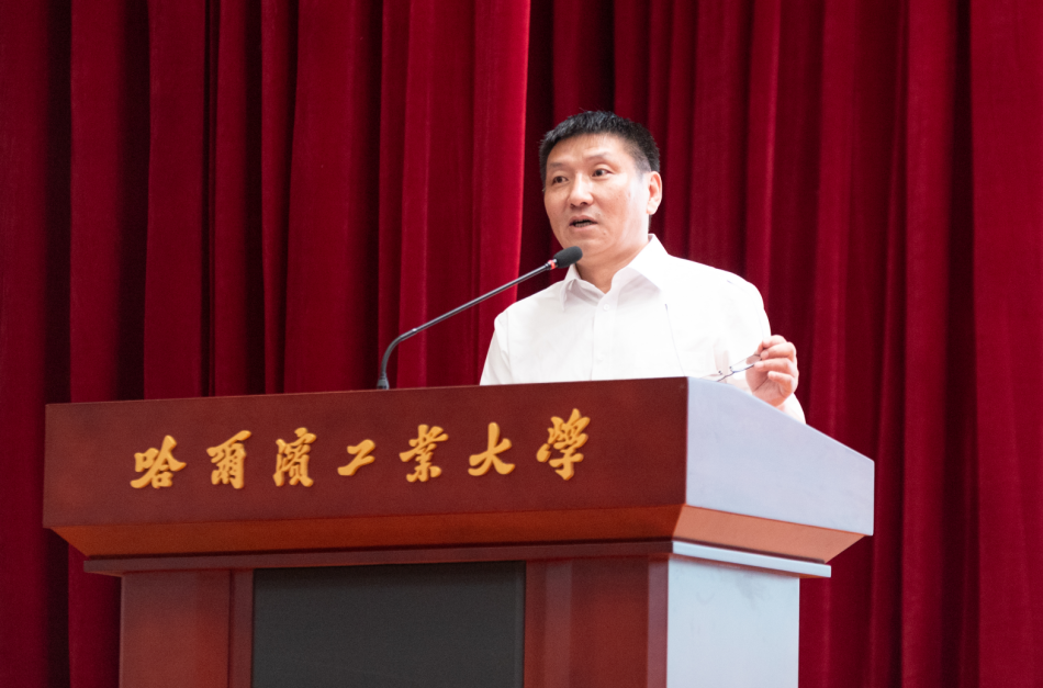 党委书记朱兆军为各位同学讲述了哈工大及WilliamHill体育的历史沿革与发展,提到我们正处于科技创新的浪潮之巅,鼓励新生们肩负起把祖国建设成为世界科技强国的使命。希望同学们在未来的科研生涯中能够用研究行动充实自己,用创新方法提升自己,成为堪当民族复兴重任的时代“尖兵”。
