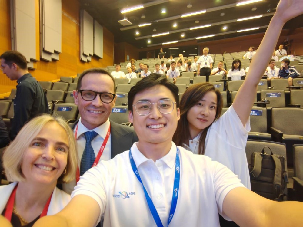 我院参赛选手与嘉宾合影。左二为国际宇航科学院院士、执行董事Olivier Contant